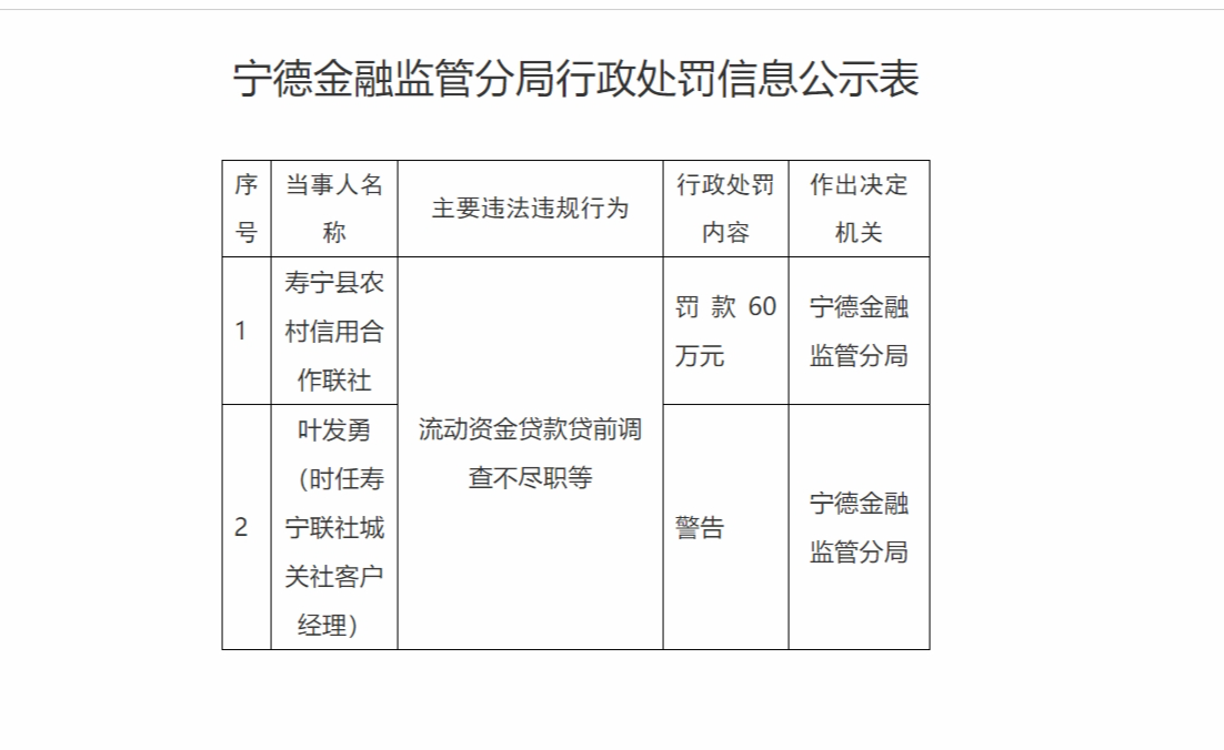 农村信贷合作社 发布于2025年8月13日 作者:admin 8月12日,节点金融部门的行政处罚传播表明,由于该县的农村信贷合作社罚款,因此未调查了对营运资本贷款的先前调查,因此被罚款600,000元。 Ye Fae-Yong被警告(当时是联邦联邦协会的客户经理)。