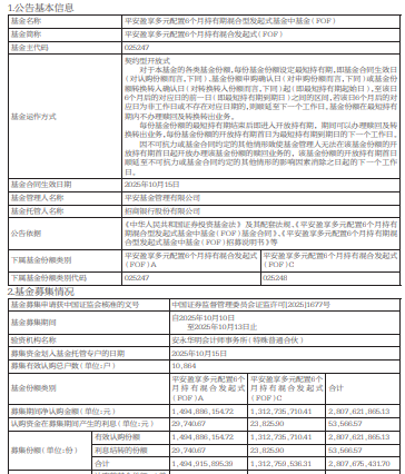 平安盈祥6个月混合FOF多元化配置成立规模28亿元