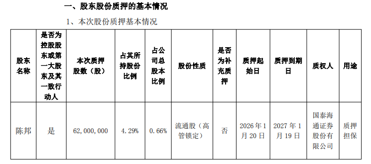 IR Eye Clinic现任董事陈邦先生将质押6,200万股,共计2.7亿股。